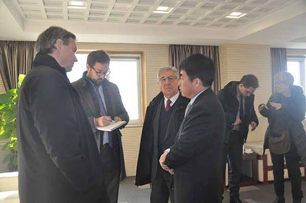 2016年11月22日,由歐盟環(huán)境委員維拉(部長級(jí))率領(lǐng)的歐盟代表團(tuán),在歐盟駐華大使史偉(副部長級(jí))的陪同下,一行16人,頂著入冬的第一場雪參訪華新環(huán)保與我公司總經(jīng)理王建明親切會(huì)見,并進(jìn)行座談。