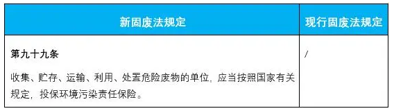 3.新增了收集、貯存、運輸、利用、處置危險廢物的單位,應(yīng)當(dāng)投保環(huán)境污染責(zé)任保險的要求